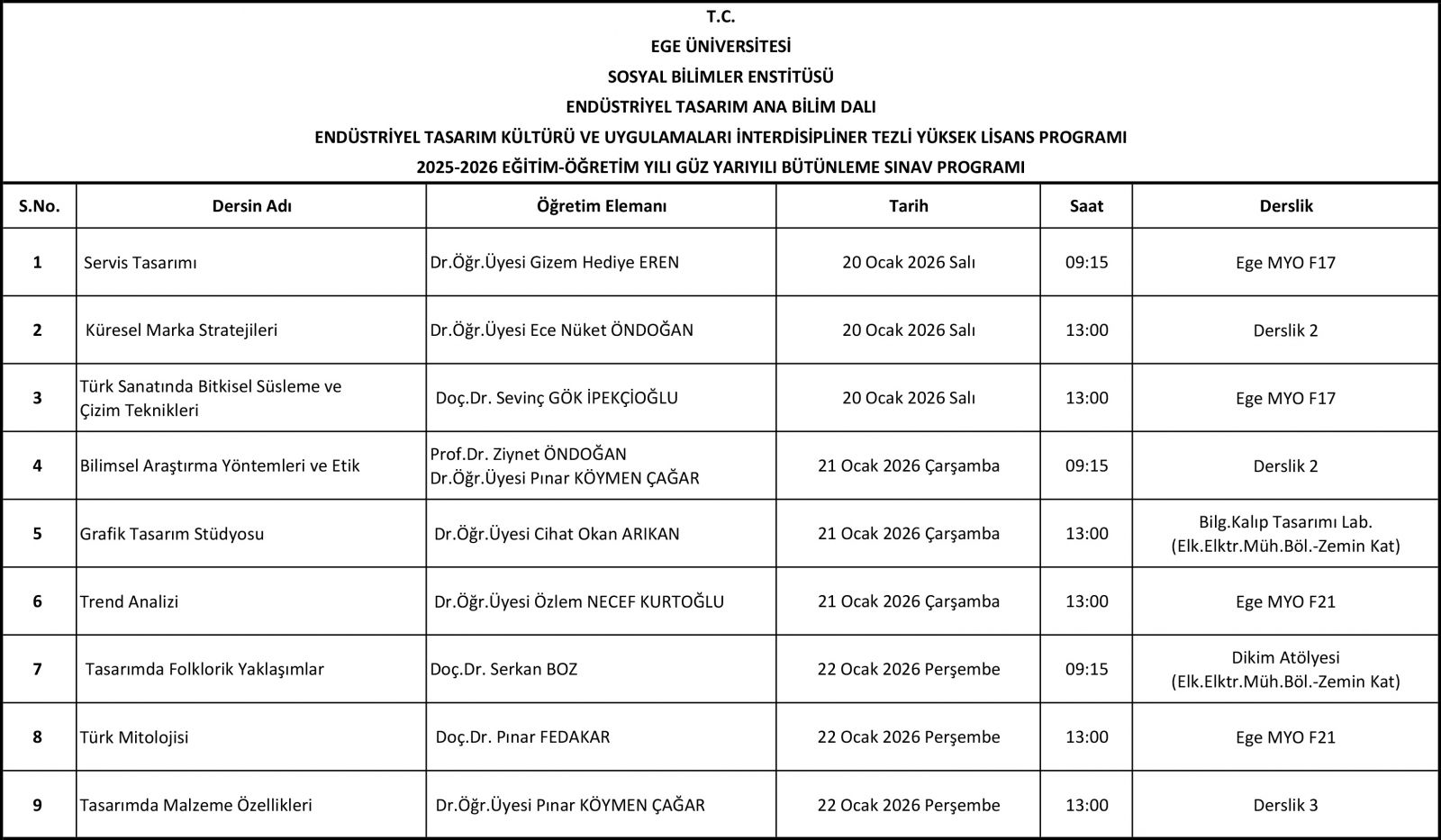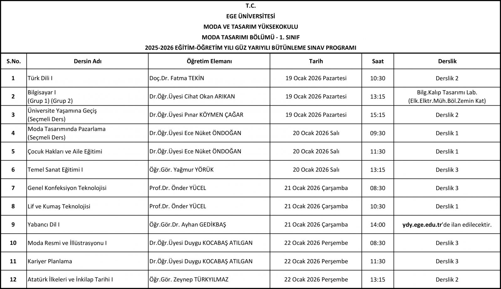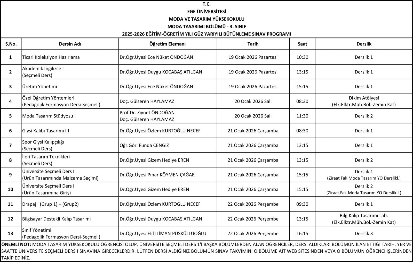 2025-2026 Güz Bütünleme Sınav Tarihleri
