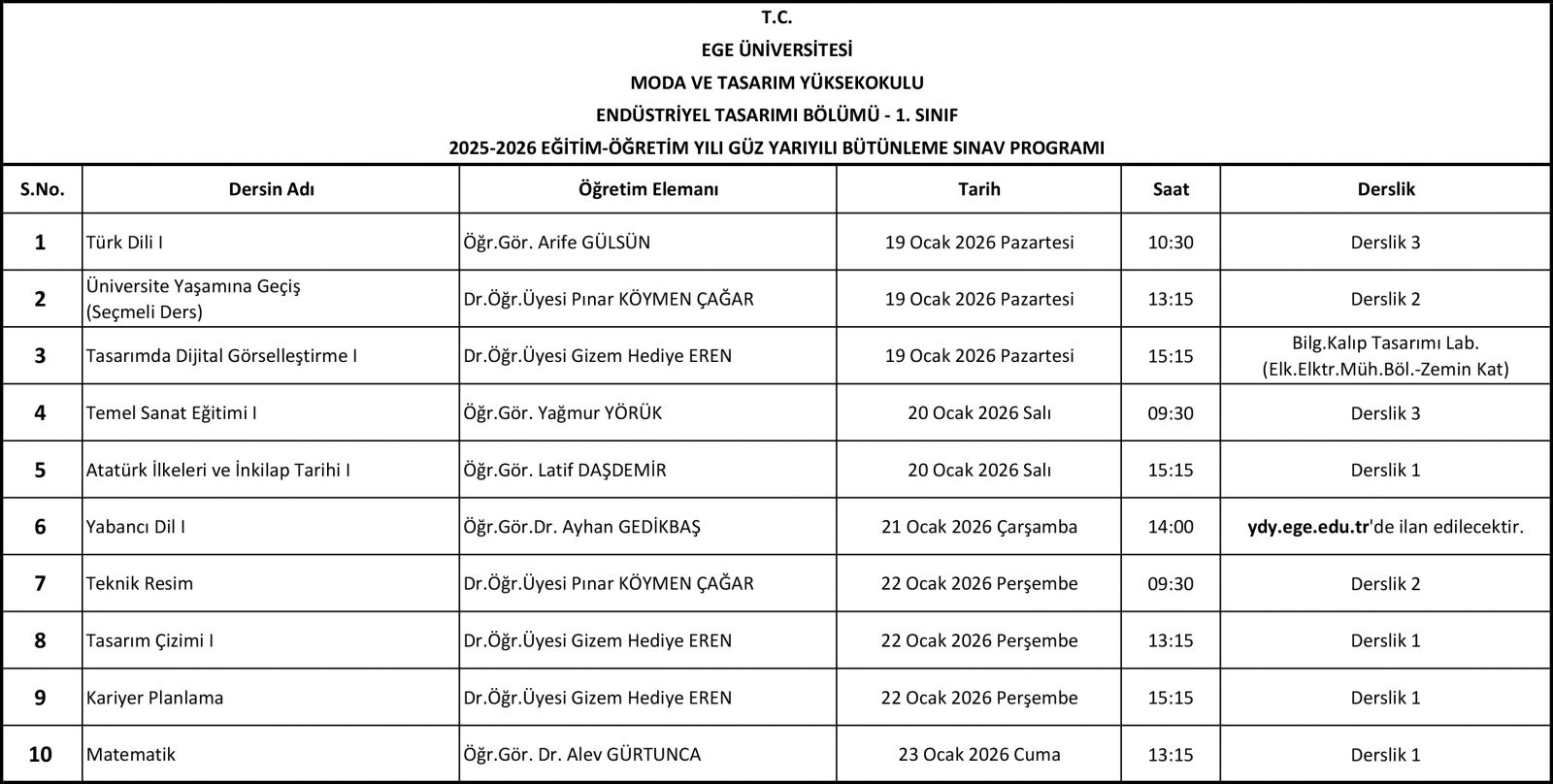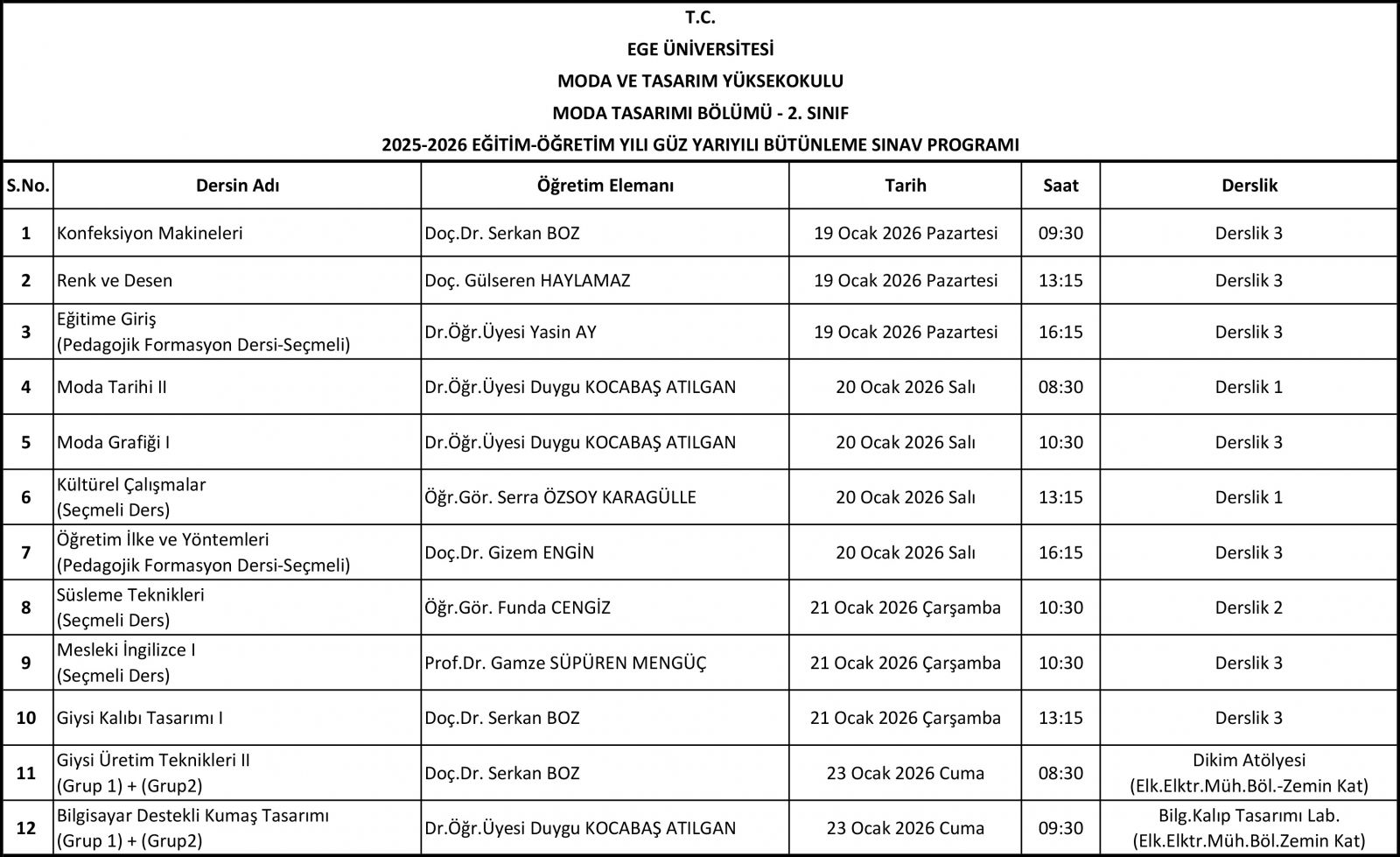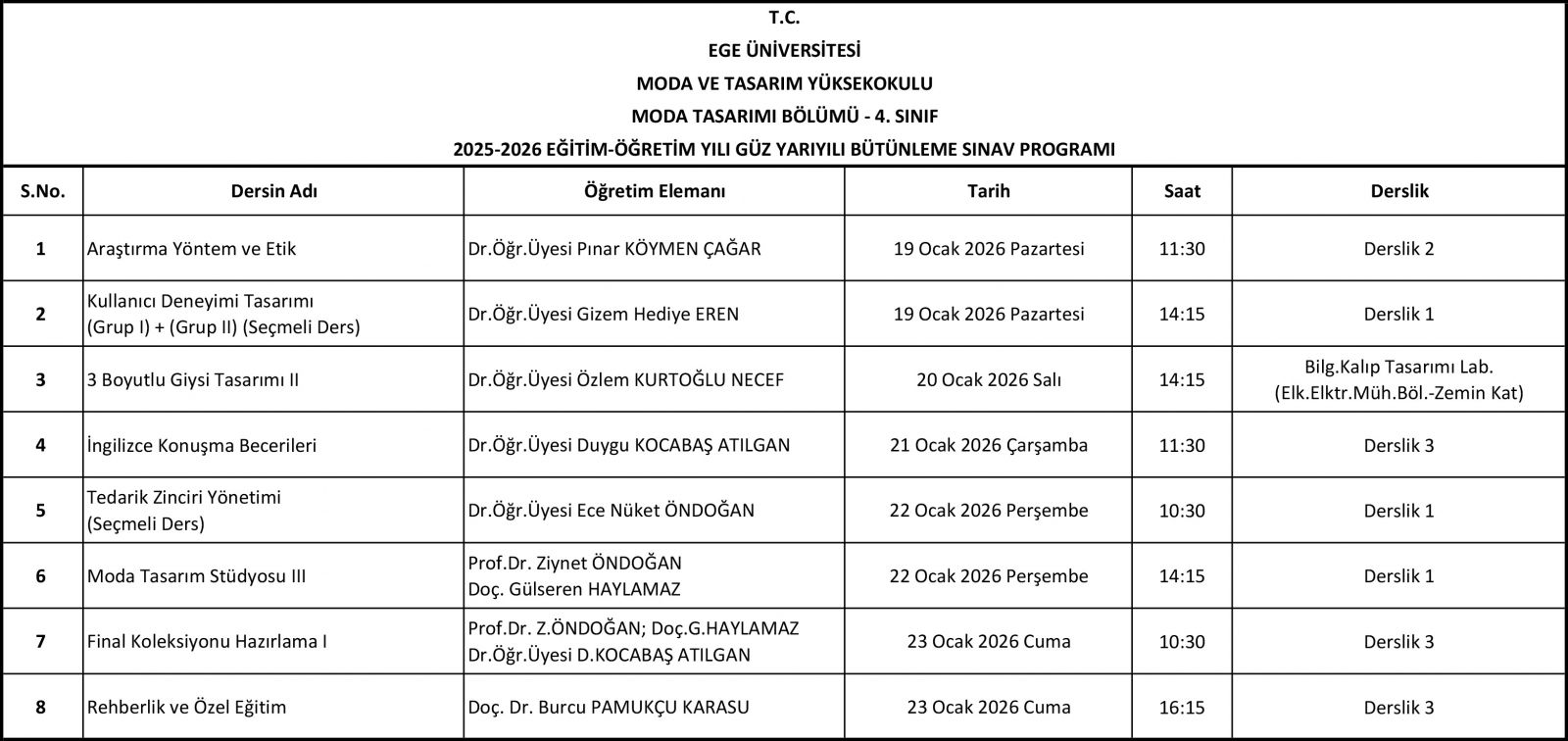 2025-2026 Güz Bütünleme Sınav Tarihleri